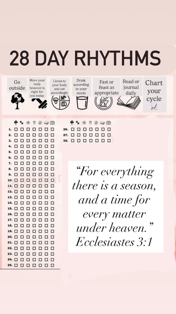 While these are my rhythms where they fall in my day, and how much time I spend on each of them differs according to whether I am in my luteal or follicular phase. When I am tempted to “reset,” I ask myself what I feel is missing or out of balance. Then I work to fix that imbalance without overhauling my otherwise quite peaceful existence.